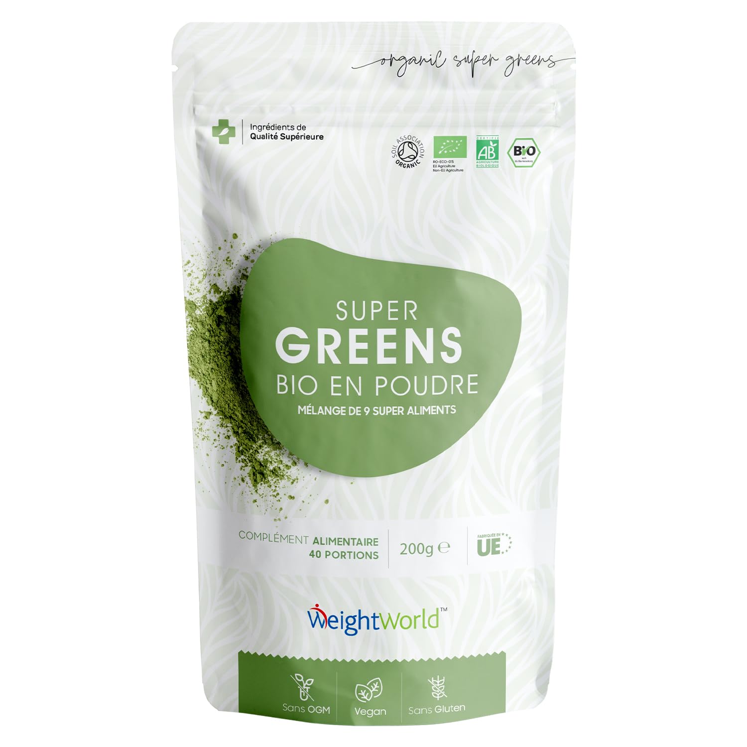 مسحوق سوبر جرينز (Super Greens) هو مكمل غذائي نباتي يحتوي على مزيج من الخضروات والفواكه والأعشاب البحرية والبروبيوتيك والإنزيمات الهاضمة. يُستخدم كإضافة غذائية لدعم الصحة العامة، وتعويض النقص في العناصر الغذائية، وتحسين الهضم والطاقة.